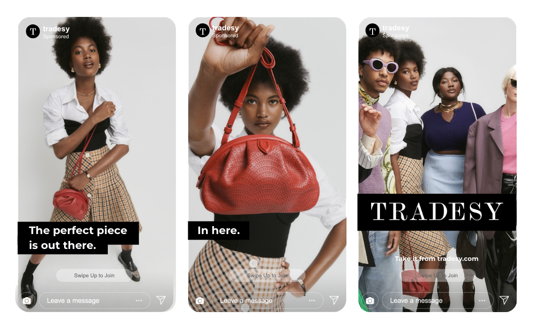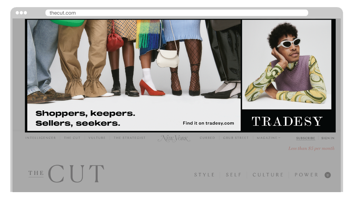 Founded in 2009 by women entrepreneurs committed to transforming the fashion industry towards a more sustainable future, Tradesy was a pioneer in the fashion resale industry. The challenge was to visually educate and inspire buyers to drive change by making second-hand fashion a first choice. Get fashion from people who get fashion. Take it from Tradesy.